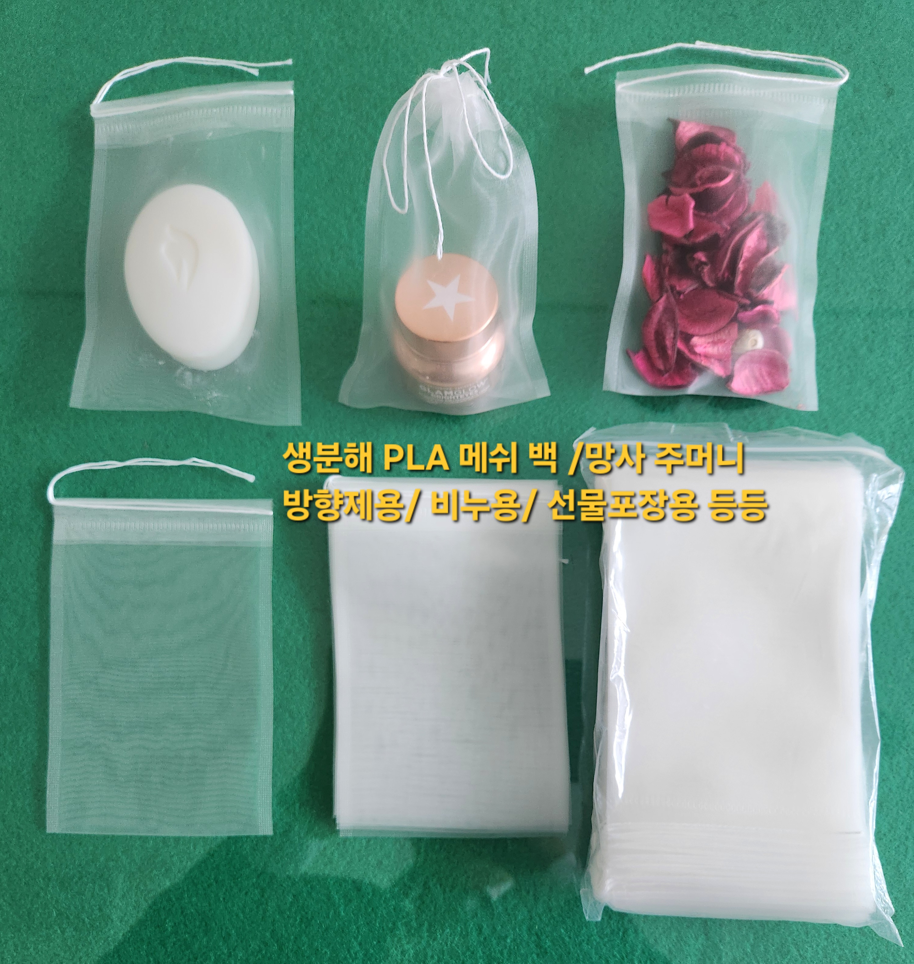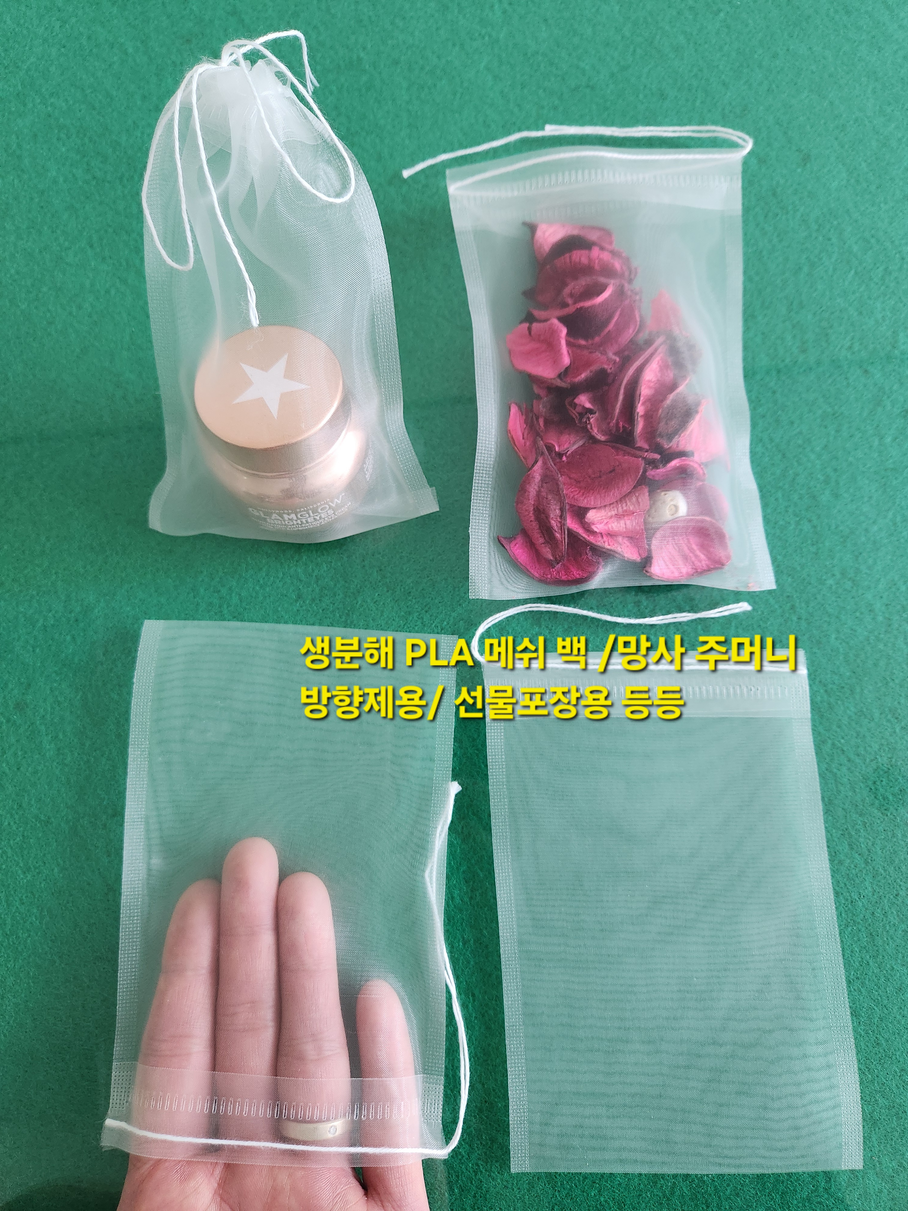 생분해 PLA 메쉬백/ 망사주머니 : 방향제용, 비누용, 선물 포장용 등등